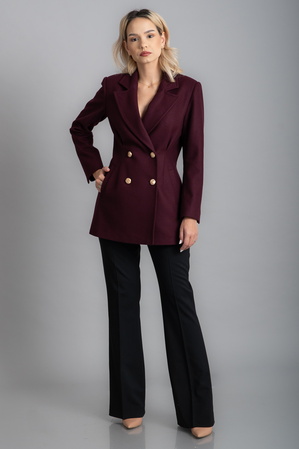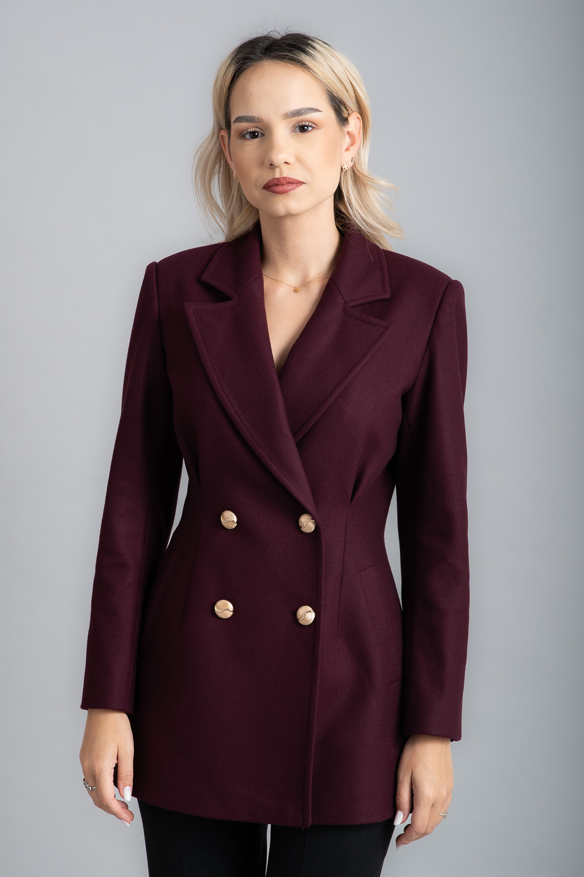 Jacketă DB scurtă din lână vișinie cu nasturi aurii