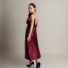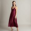 Rochia Silky Burgundy din mătase este un model atemporal din garderoba ta. Fluiditatea materialului subliniază grația și feminitatea, oferind eleganță în orice context. Decolteul în V față-spate, oferă alungire siluetei iar croiul rochiței avantajează structuri cu siluete diverse.